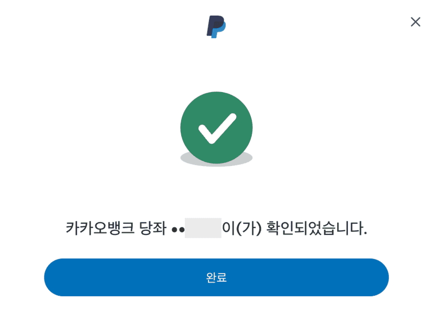페이팔에 은행 계좌 연결이 완료되었습니다.